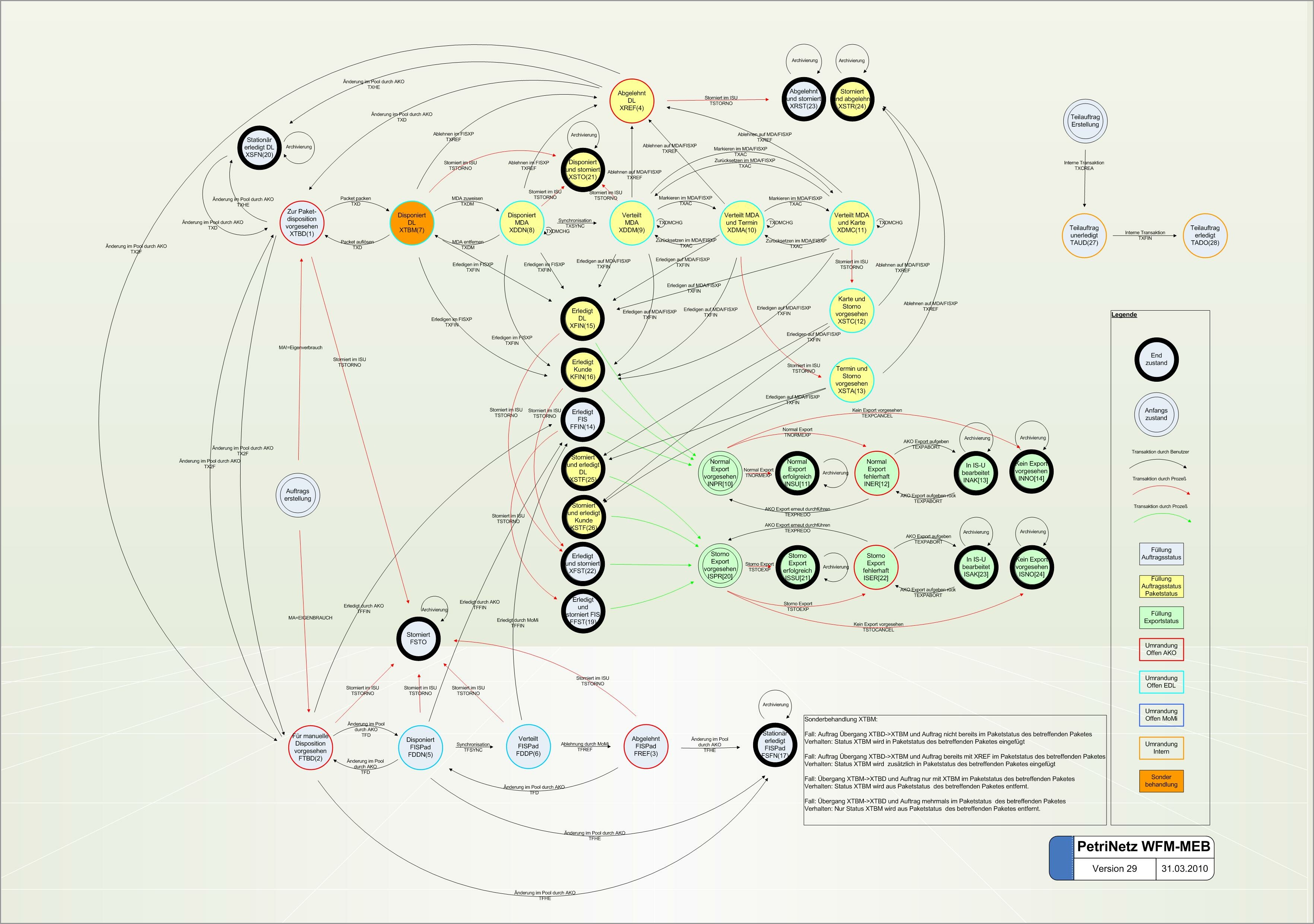 Die ausgewählten Aufträge haben den Auftragsstatus "Disponiert DL XTBM". Laut dem Petrinetz können Sie z. B. die Aufträge in den Status "Disponiert MDA XDDN" transferieren (siehe folgende Abbildung).