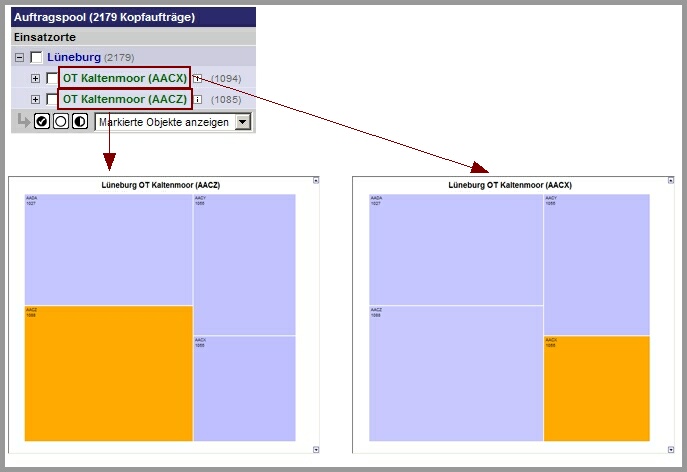 können Sie sich die geografisch orientierte Verteilung und die Lage der Portion anzeigen lassen. Die Darstellung der Portionen mit einem entsprechenden topographischen Hintergrund ist optional möglich.